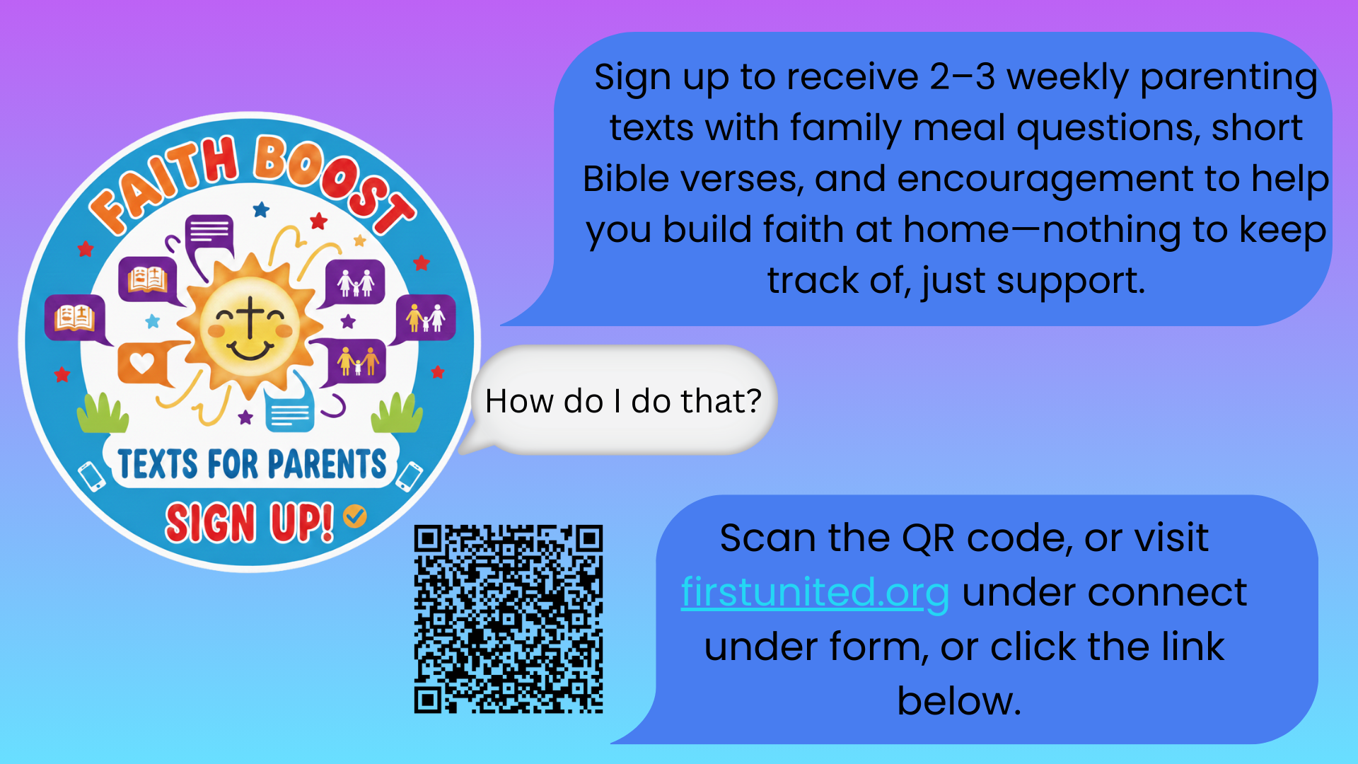 First United serves as the guide to help children learn how to discover hope, deepen their faith, and demonstrate love to others as we deepen the children's faith formation.